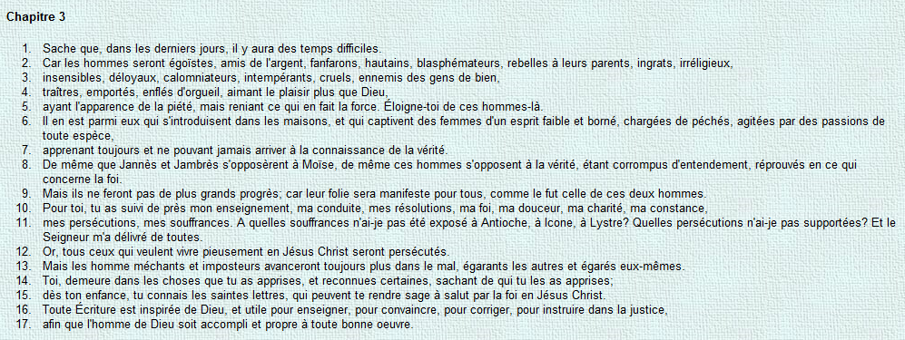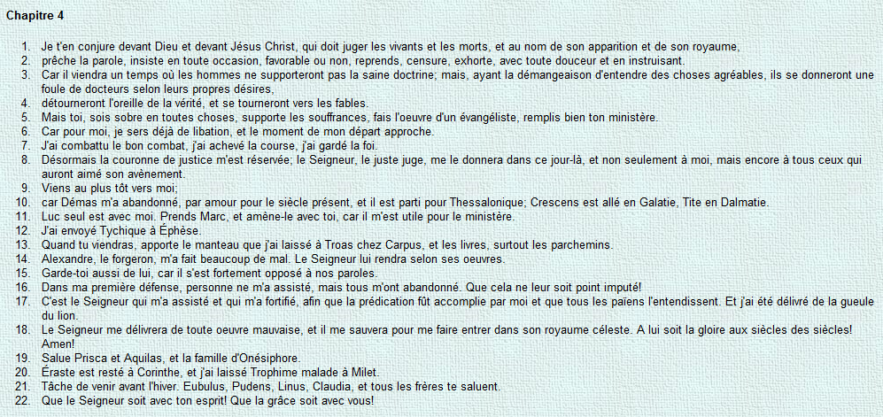 C'est l'une des trois épîtres pastorales avec la Première épître à Timothée et l'épître à Tite. Pressentant sa fin prochaine, Paul encourage Timothée à rester fidèle à Jésus ressuscité avec lequel, nous aussi, nous vivrons (chap. 2, 8 et 11-